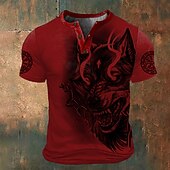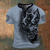 More information about Men's Graphic Wolf T shirt Henley Shirt Short Sleeve 3D Print Fashion Retro Vintage Classic Sports Outdoor Holiday Going out Spring & Summer White Red Brown Dark Blue Henley Henley T-Shirt