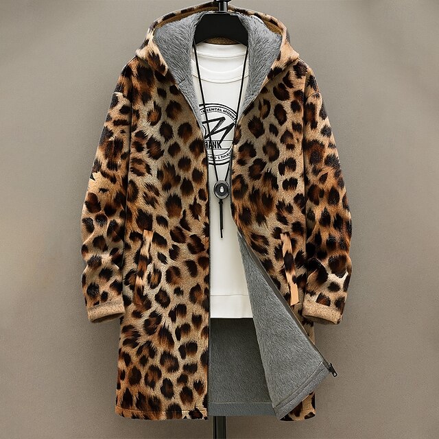 More information about Men's Graphic Leopard Print Winter Coat Fleece Jacket Coat Thermal Warm Comfortable Casual Daily Wear Zipper Pocket 3D Print Fall Winter Hooded Long Sleeve Yellow Blue Brown