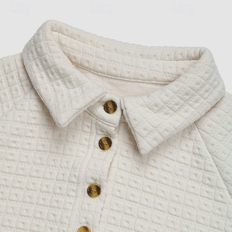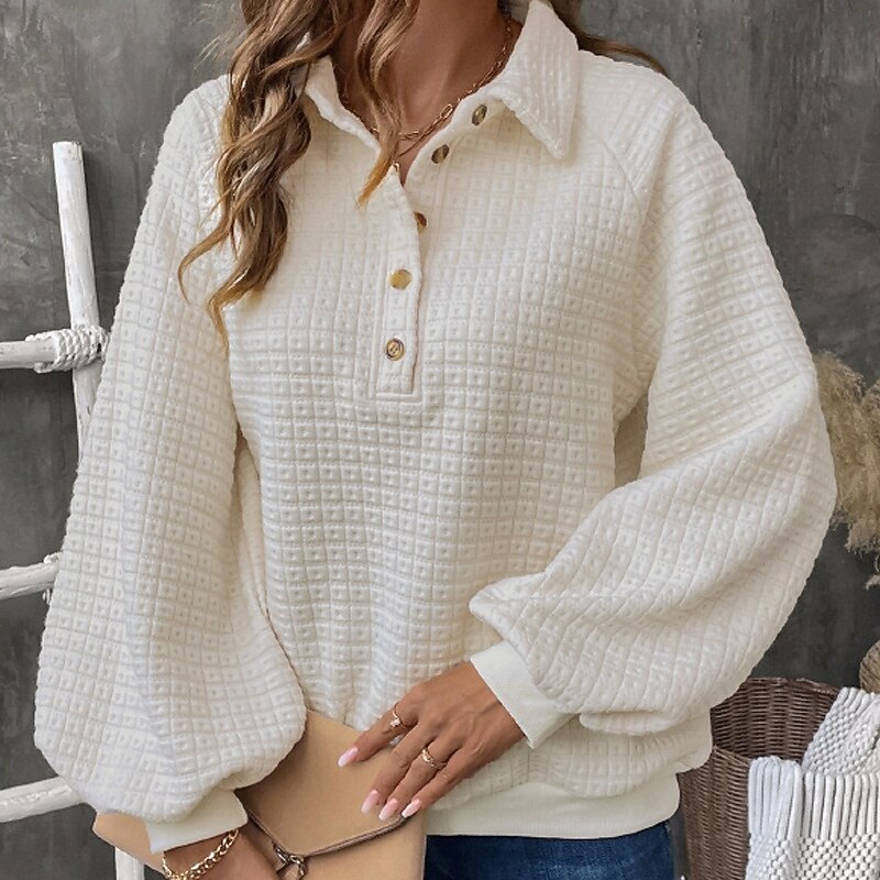More information about Women's Texture Sweatshirt Waffle Sweatshirt Pullover Sweatshirt Sweatshirts Plain Streetwear Casual Long Sleeve V Neck Regular Tops Street Going out Buttons Beige Fall