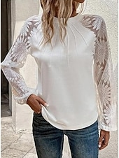 Women's Blouse new-age Modern Long Sleeve Regular Tops Crew Neck Work Daily White Spring Fall
