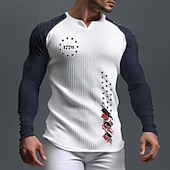 More information about Veterans Day Men's Patriot Patriotic Veteran Graphic 1776 National Flag Waffle Shirt T shirt Raglan T Shirt Long Sleeve T shirt 3D Print V Neck Shirt Sports Daily Casual Sports Outdoor Holiday Going