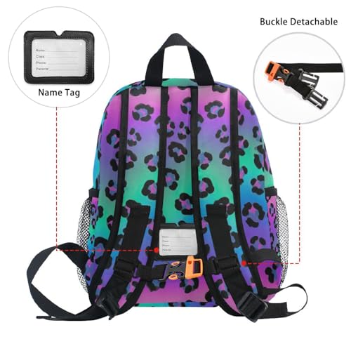 More information about Backpack for Toddler Boys Girls, Black Leopard Spots Gradient Blue Kids School Backpacks with Name Tag Mini, 3-8 Years