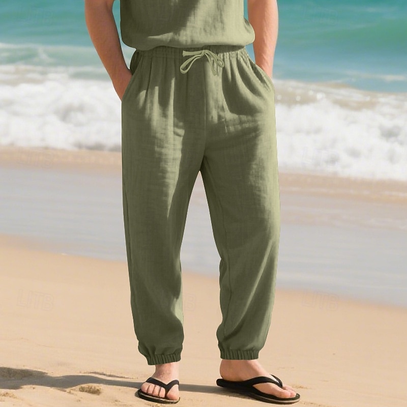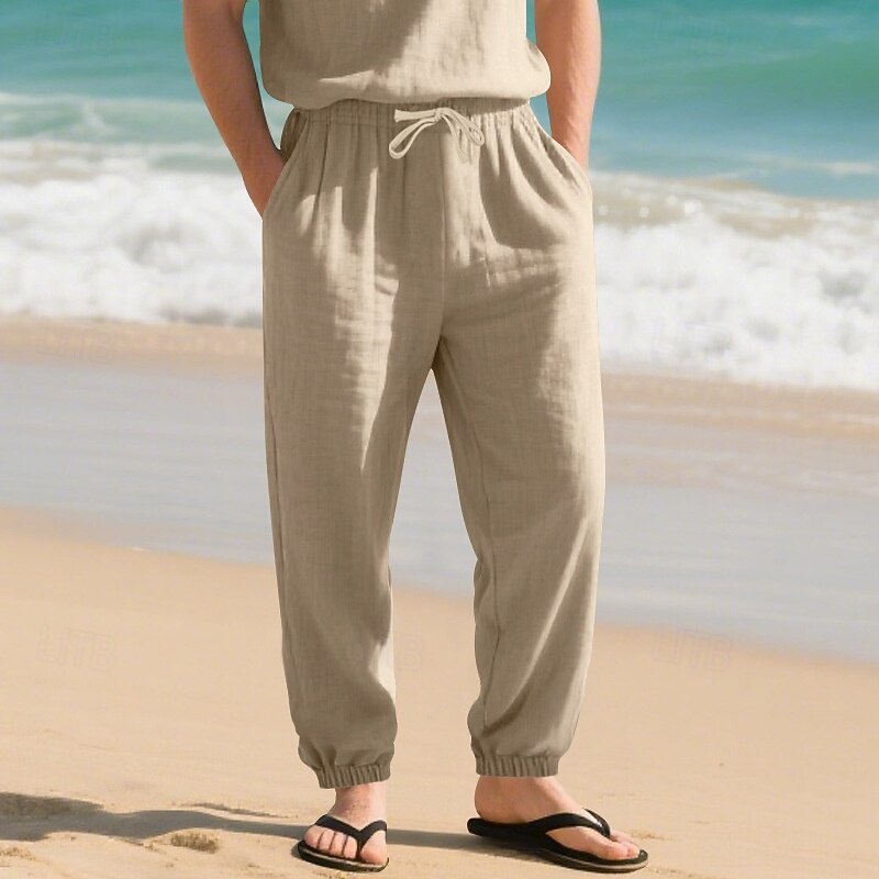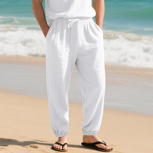 HOT ! Men's Joggers Linen Pants Trousers Summer Pants Beach Pants Pocket Drawstring Elastic Waist Plain Comfort Breathable Vacation Daily Holiday Hawaiian Boho Black White