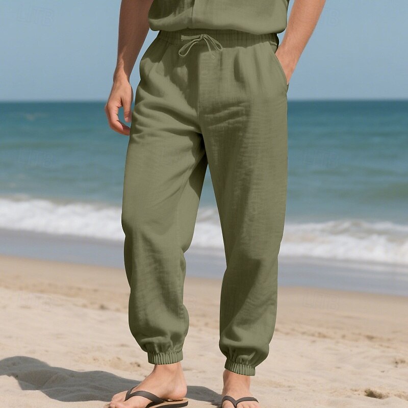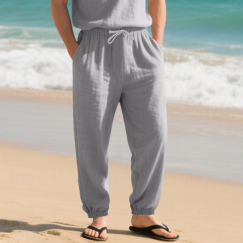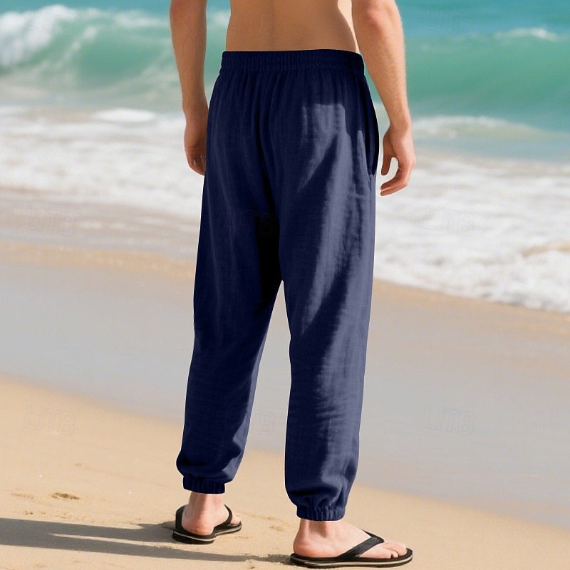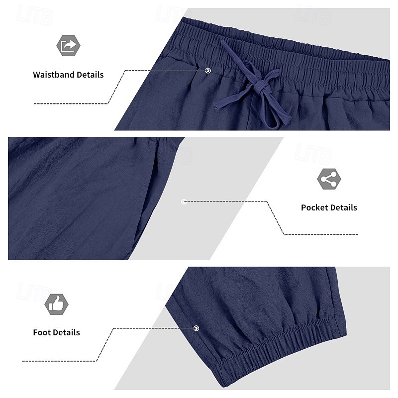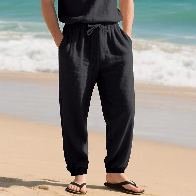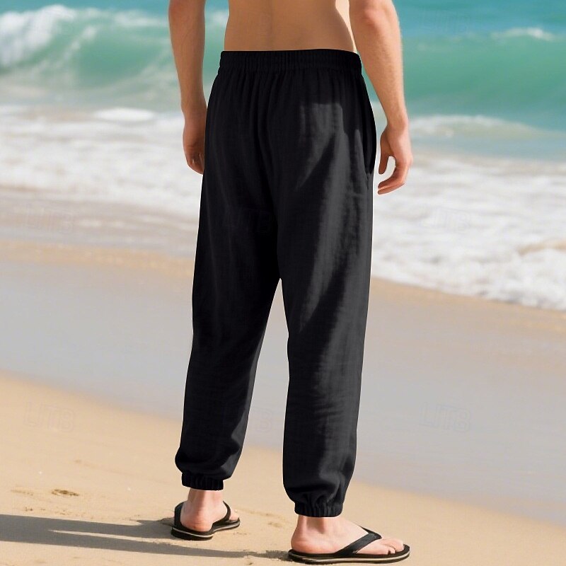 More information about Men's Joggers Linen Pants Trousers Summer Pants Beach Pants Pocket Drawstring Elastic Waist Plain Comfort Breathable Vacation Daily Holiday Hawaiian Boho Black White