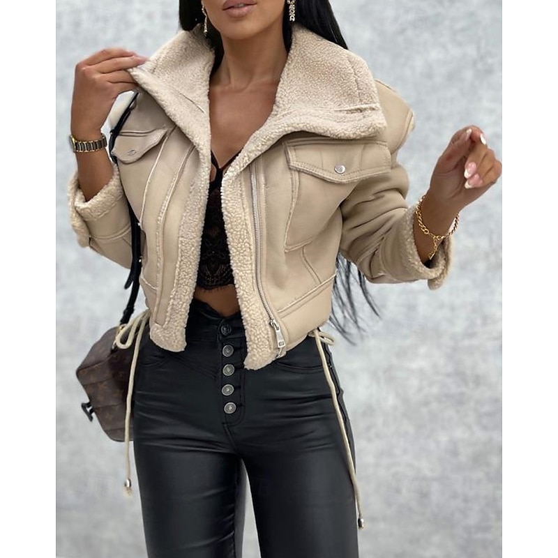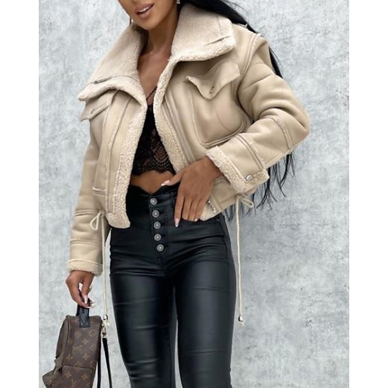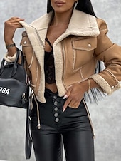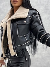 $54.99 - Women's Faux Leather Jacket Warm Comfortable Pocket Buttons Casual Plain Vacation Casual Daily Wear Going out Short Turndown Regular Fit Long Sleeve Outerwear Black Khaki Beige Fall Winter 2025. Shop for cheap Furs & Leathers online? Buy at lightinthebox.com on sale today!