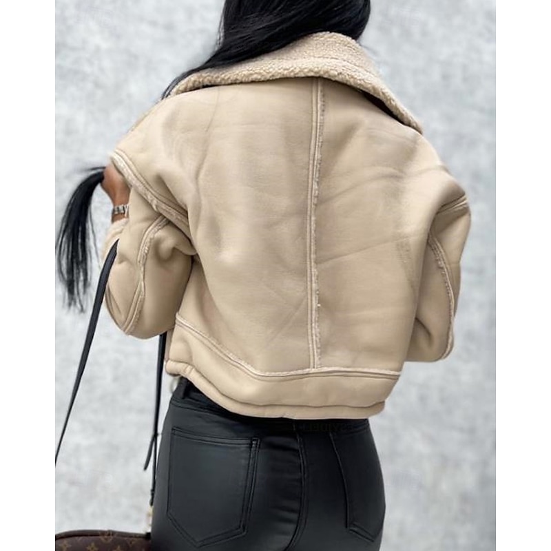 More information about Women's Faux Leather Jacket Warm Comfortable Pocket Buttons Casual Plain Vacation Casual Daily Wear Going out Short Turndown Regular Fit Long Sleeve Outerwear Black Khaki Beige Fall Winter