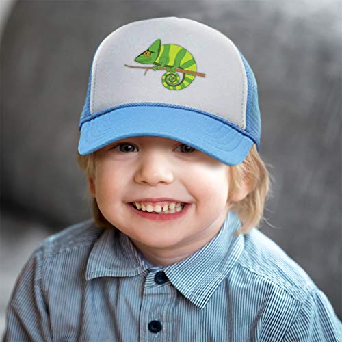 Summer Kids Trucker Hat Iguana on Stick Funny Polyester Boys Girls Sun Toddler Caps Light Blue Design Only Adjustable 6
