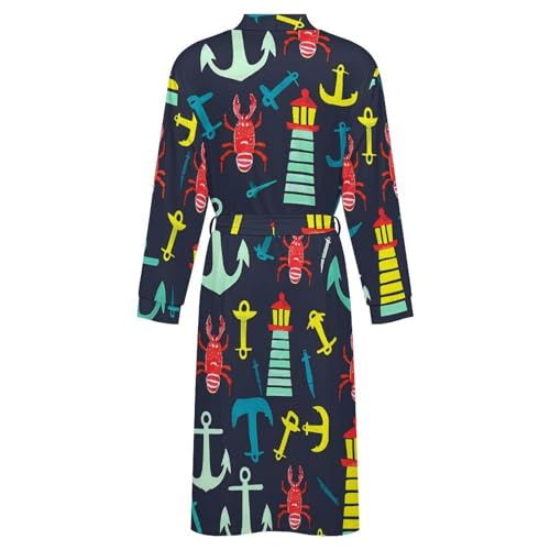 HOT ! Red Lobster Lighthous Soft Robe Long Sleeve Bathrobes V Neck Sleepwear Spa Robes with Belt Men Woman