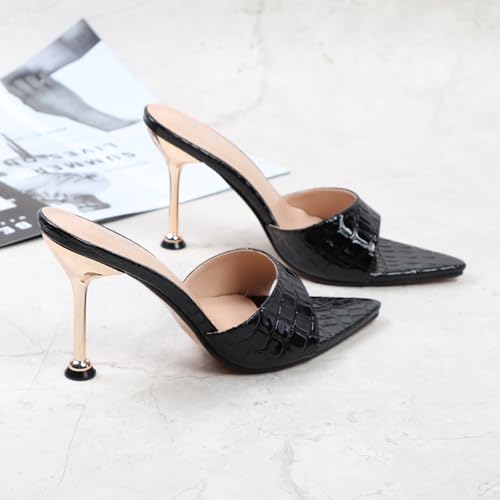 Women's Leather Printed Pointed Open Toe Stiletto Slide Sandals Sexy Slip On High Heel Backless Mules Summer Fashion Slingback Wedding Party Dating Dress Pumps 6