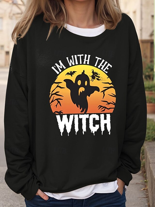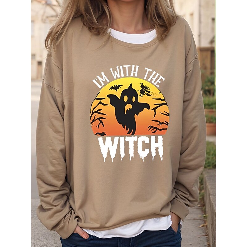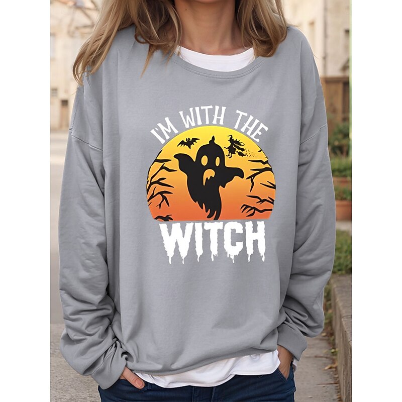 More information about Halloween Women's Sweatshirts Bat Graphic Letter Vintage Fashion Casual Long Sleeve Crew Neck Regular Tops Casual Print Black Red Brown Green Khaki Fall Winter