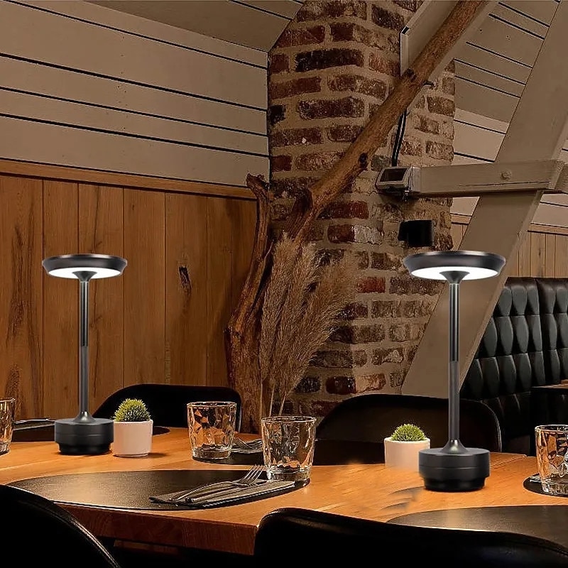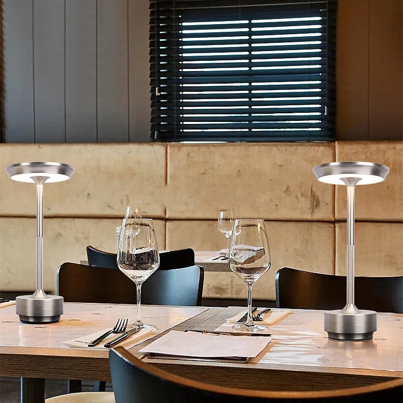 Aluminum Wireless Table Lamp Led Tri-color Touch Dimming Rechargeable Desktop Night Light LED Lamp for Restaurant Hotel Bar Bedroom Decor Lighting