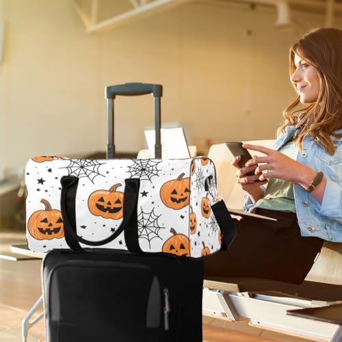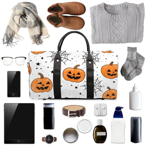 trending ! TropicalLife Halloween Travel Duffle Bag for Women Men PumpkinNet Sports Gym Bag Waterproof Carry on Overnight Weekender Bag