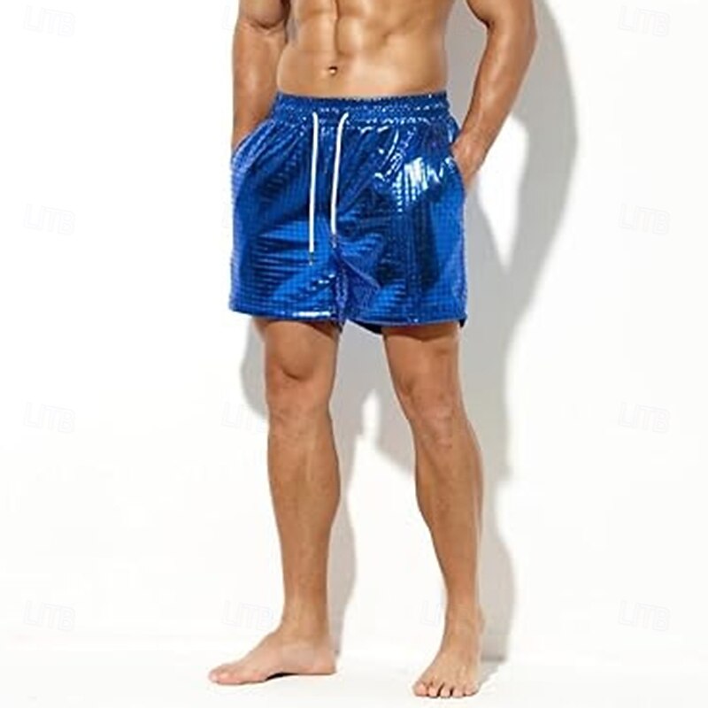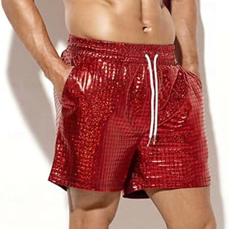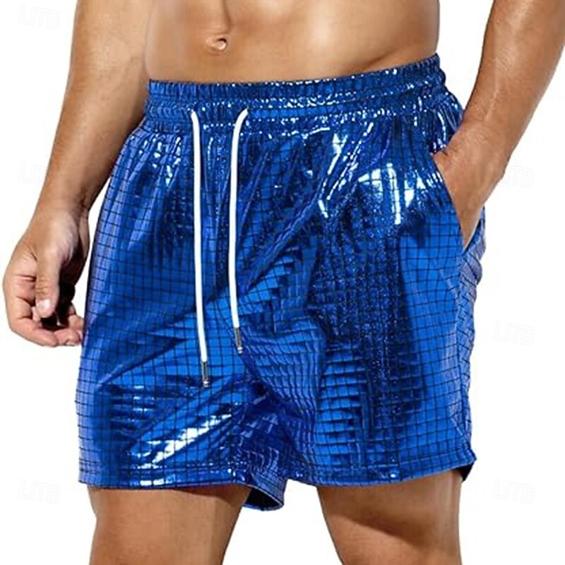 HOT ! Retro Vintage 1980s Shorts Disco Drawstring Shiny Latex Patent Metallic Fancy Dress Men's Halloween Carnival Pride Parade Pride Month Adults' Pants Summer