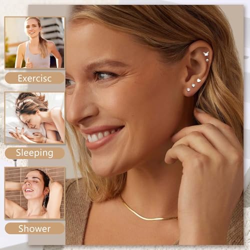 • Earrings Sets for Multiple Piercing: Including 21 pairs silver flat back stud earrings, cz stud earrings, butterfly earrings, star and moon earrings, heart earrings, ball earrings, etc. Can be used as as cartilage earring, helix piercing, first hole, second hole, third hole, tragus piercing, etc. Feel free to match your style!