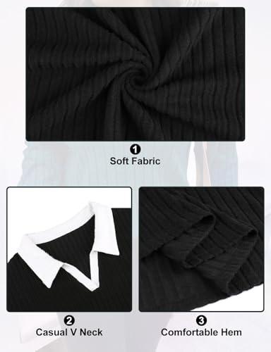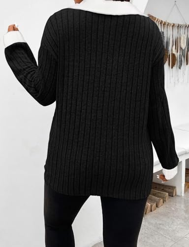 Koscacy Women Plus Size Casual Knit Sweater Lapel V Neck Solid Color Tops Lightweight Long Sleeve Blouses 4
