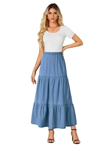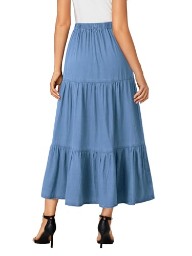 OPOIPIN Women's Elastic High Waist Tiered Ruffle A Line Swing Denim Long Skirt 1