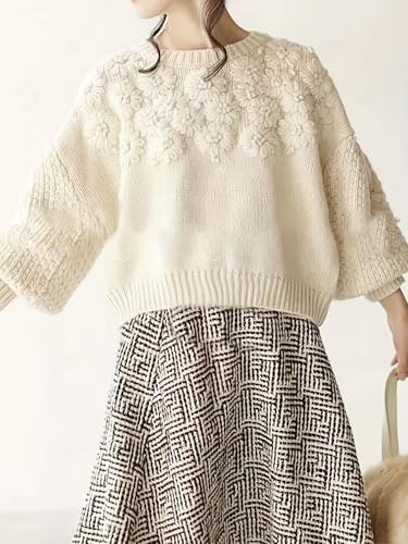 • Features: Floral crochet sweater, chic beige pullover with lantern sleeve, round neck, long sleeve, embroidered, drop shoulder, fashionable, provide you casual and trendy look