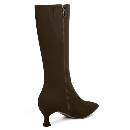 More information about FEMSTEP Womens Sexy Suede Pointed Toe Party Zip Kitten Low Heel Knee High Boots 2 Inch