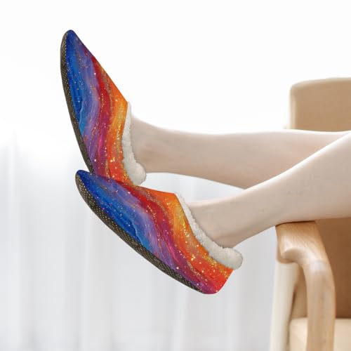 Rainbow Color Glitter Slippers for Women Slipper Socks Soft Fuzzy House Slippers Shoes for Indoor Bedroom, Winter Cozy Christmas Gifts 5