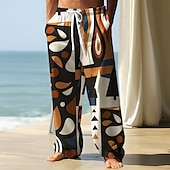 More information about Men's Trousers Baggy Pants Casual Pants Elastic Drawstring Waist Linen-Like Pants with Pockets Geometric Color Block Full Length Vacation Daily Classic Style Red Blue Inelastic