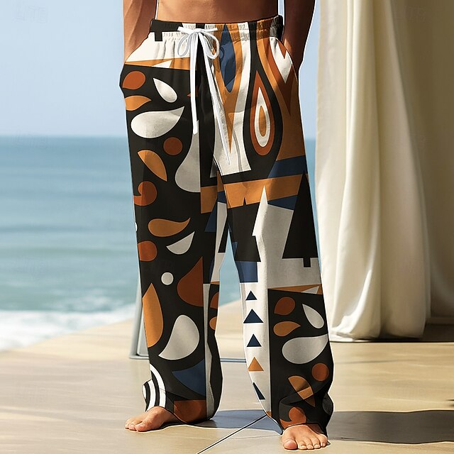 HOT ! Men's Trousers Baggy Pants Casual Pants Elastic Drawstring Waist Linen-Like Pants with Pockets Geometric Color Block Full Length Vacation Daily Classic Style Red Blue Inelastic