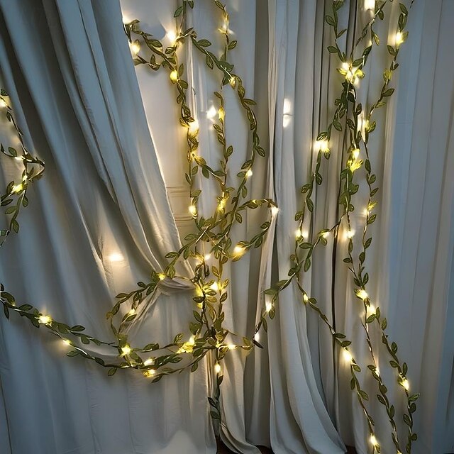 HOT ! Elegant Wedding Reception Party 5M 50 LED Green Leaves Garland Fairy Lights, Battery-Powered Copper Wire String Lights for Wedding, Forest Table, Christmas & Home Decor
