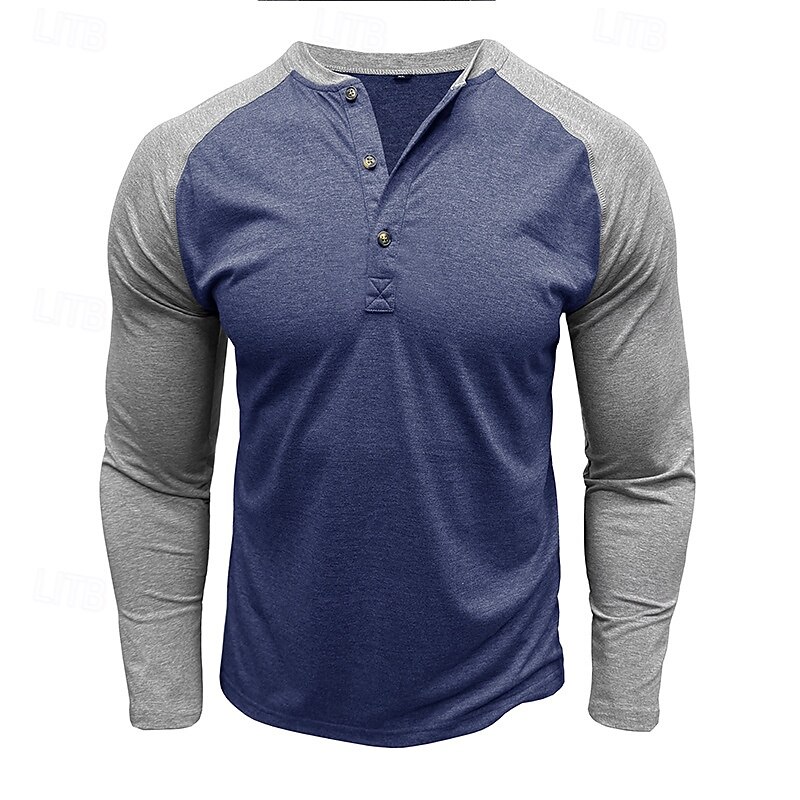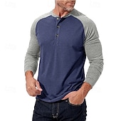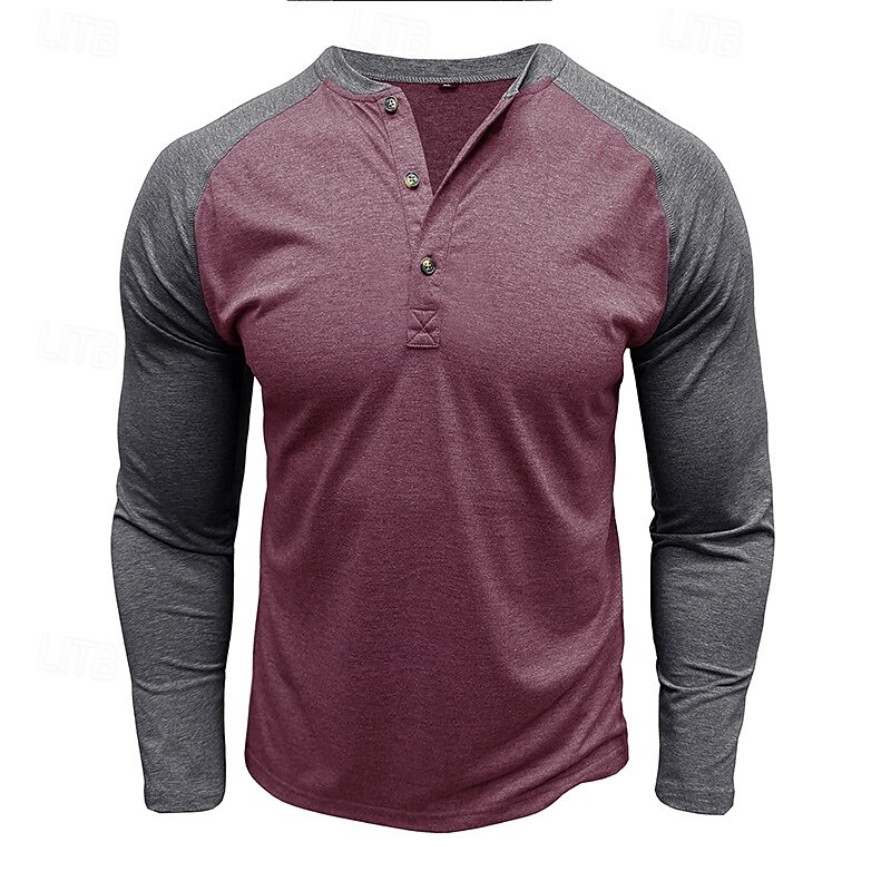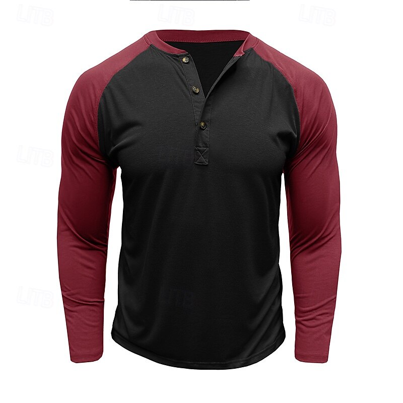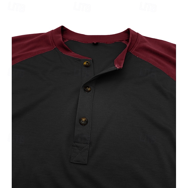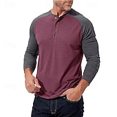 More information about Men's Button T Shirt T Shirt Henley Shirt Tee Long Sleeve Henley Spring & Fall Color Block Fashion Designer Basic Patchwork Vacation Street Going out Black Dark Red Yellow Top Tee for Men
