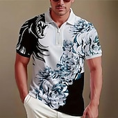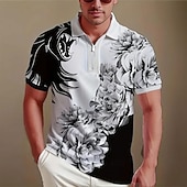 More information about Men's Floral Zip Polo Short Sleeve Turndown Casual Daily Modern Athleisure Casual Daily Zipper Summer Robin's Egg Blue Black Red
