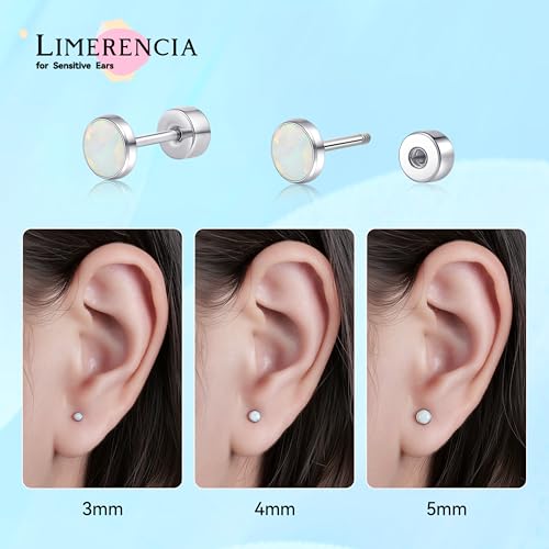 HOT ! limerencia 20G Titanium Flatback Earrings for Sensitive Ears, G23 Hypoallergenic Titanium Simulated Opal Post Screw Back on Earrings for Cartilage Helix Tragus