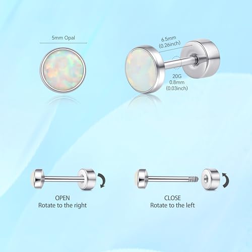 limerencia 20G Titanium Flatback Earrings for Sensitive Ears, G23 Hypoallergenic Titanium Simulated Opal Post Screw Back on Earrings for Cartilage Helix Tragus 5