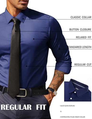 • 【Flex Silky & Slightly Shinny Fabric】Mens long sleeve dress shirt is made of ultra-smooth, lustrous fabric with slight stretch for superior comfort and flexibility. Breathable, wrinkle free material ensures a crisp look without ironing, perfect for travel and daily wear