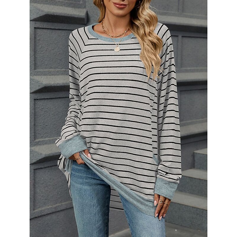 More information about Women's T Shirt Fashion Modern Casual Long Sleeve Regular Tops Crew Neck Daily Weekend Gray / White Black Blue Light Grey Fall Winter