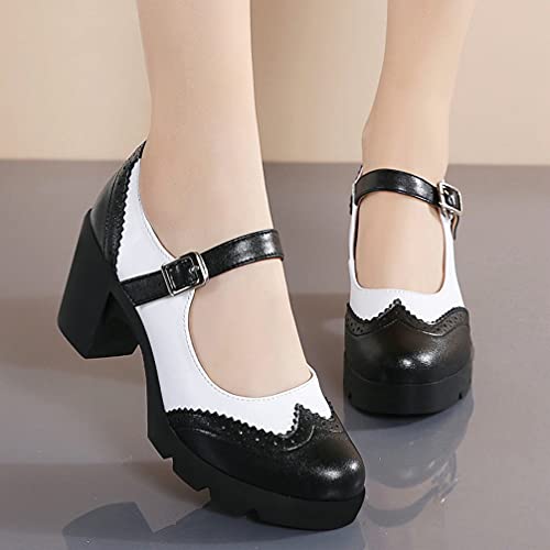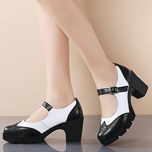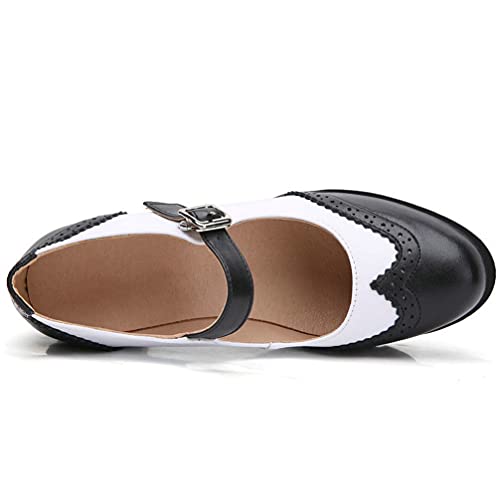 • Must-Have in Every Girl's Closet: These retro wingtip two tone oxford shoes chunky heel mary janes are full of luxury and fashion. It is simple but elegant, reflect the graceful figure of women. Every step you take wearing it will attract all the attentions.