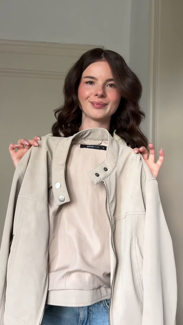 trending ! Faux leather jacket - light beige