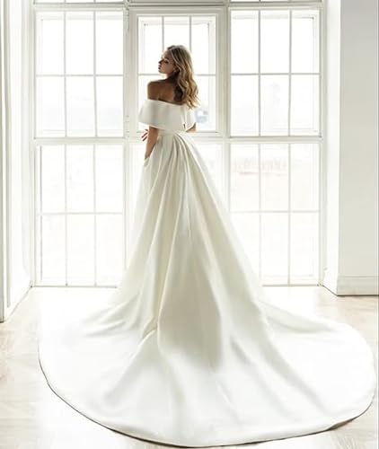 More information about Satin Mermaid Wedding Dresses for Bride Off Shoulder Beach Wedding Dress with Detachable Train