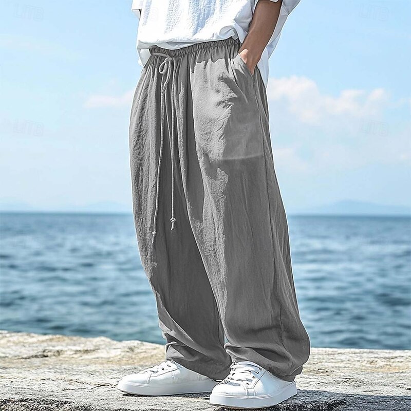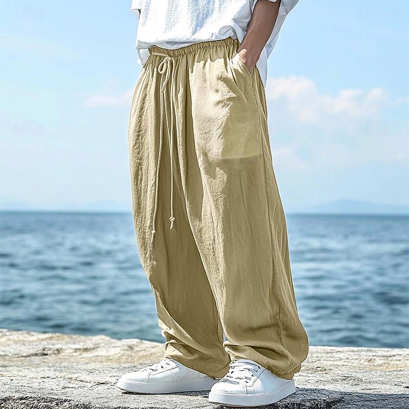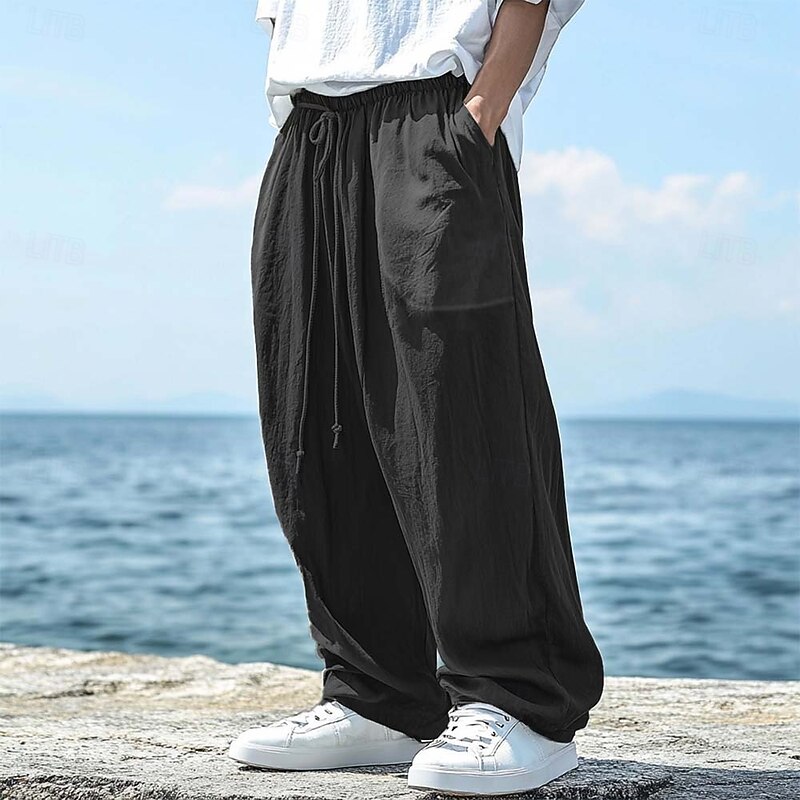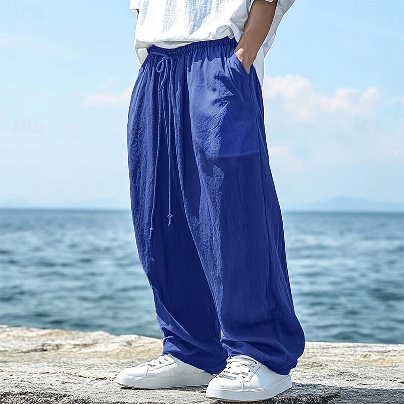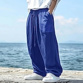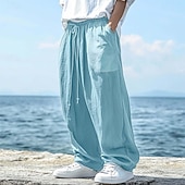 More information about Men's Linen Pants Trousers Summer Pants Drawstring Elastic Waist Straight Leg Plain Comfort Breathable Full Length Outdoor Casual Daily Fashion Classic Style Black Navy Blue Inelastic