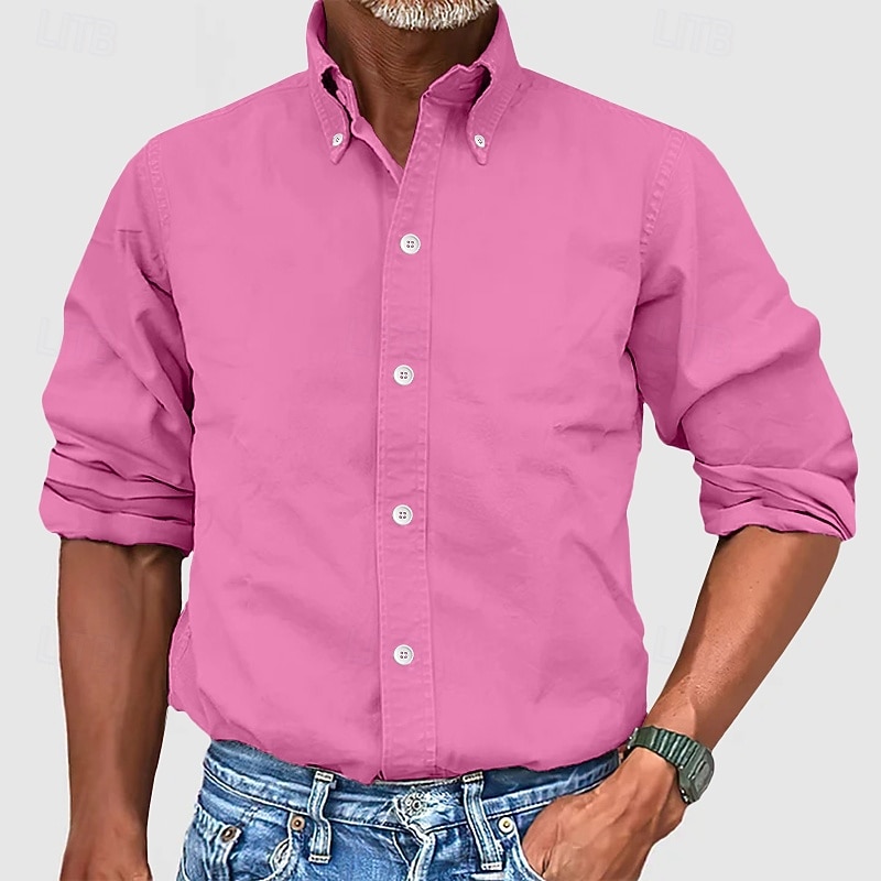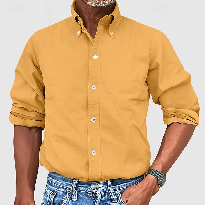 More information about Men's Shirt Dress Shirt Button Down Shirt Plain Business Daily Black White Yellow Pink Long Sleeve Turndown Summer Spring Clothing Apparel