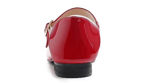 FEVERSOLE Women's Mary Jane Fashion Square Toe Easy Buckle Low Heel Slip On Flats 5