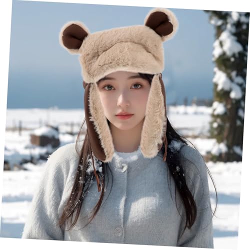 Mikinona Cute Bear Ear Winter Hat for Women and Unisex Plush Thermal Earflap Beanie Windproof Outdoor Headgear for Cycling Hiking and Skiing Adorable and Warm with Ear Protection Coffee 4