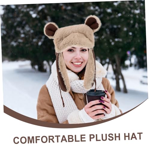Mikinona Cute Bear Ear Winter Hat for Women and Unisex Plush Thermal Earflap Beanie Windproof Outdoor Headgear for Cycling Hiking and Skiing Adorable and Warm with Ear Protection Coffee 2