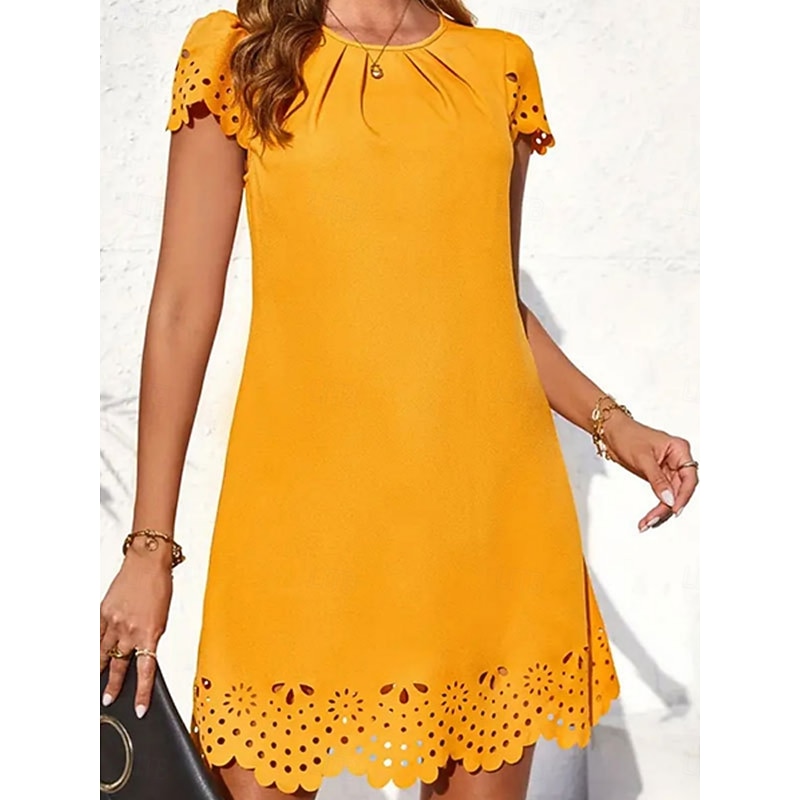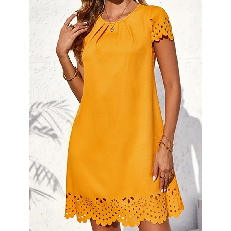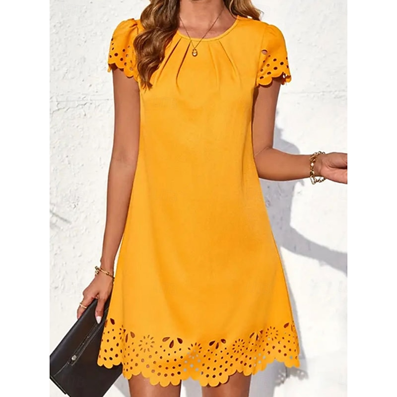 HOT ! Women's Mini Dress Black Dress Casual Dress Basic Casual Vacation Daily Regular Fit Plain Short Sleeve Crew Neck Black Yellow Pink Summer