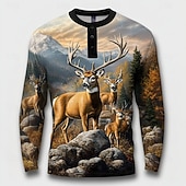 Men's Reindeer Henley Shirt Long Sleeve Fashion Cute Daily Casual Holiday Going out Winter Spring &  Fall Black Henley Henley T-Shirt 1