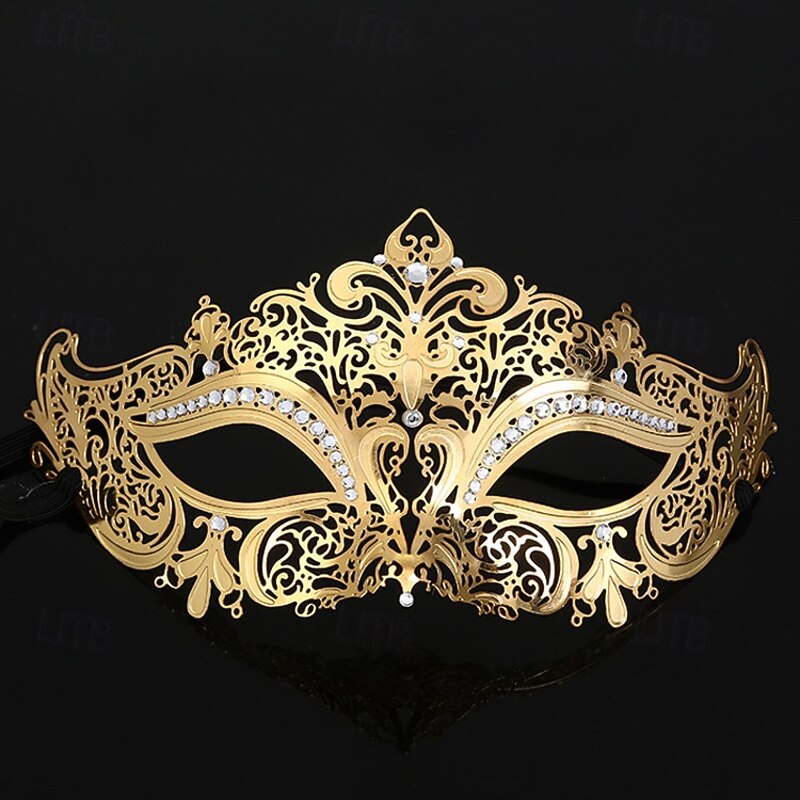 : Crafted from high-quality metal, this Venetian-style mask combines lightweight durability with intricate lace-like detailing for an air of sophistication and mystery. The metal finish adds a touch of luxury, ensuring long-lasting wear for a variety of occasions.