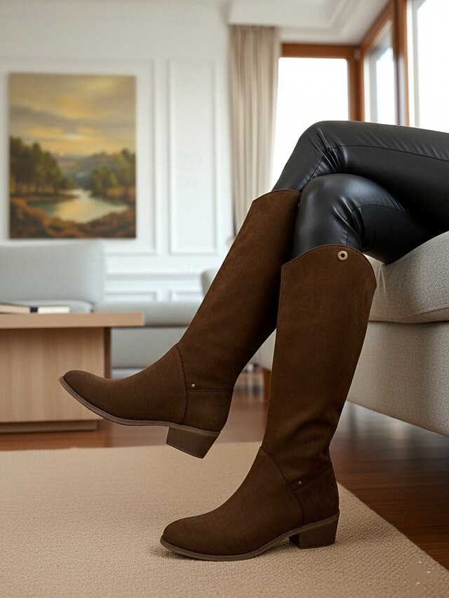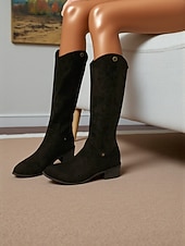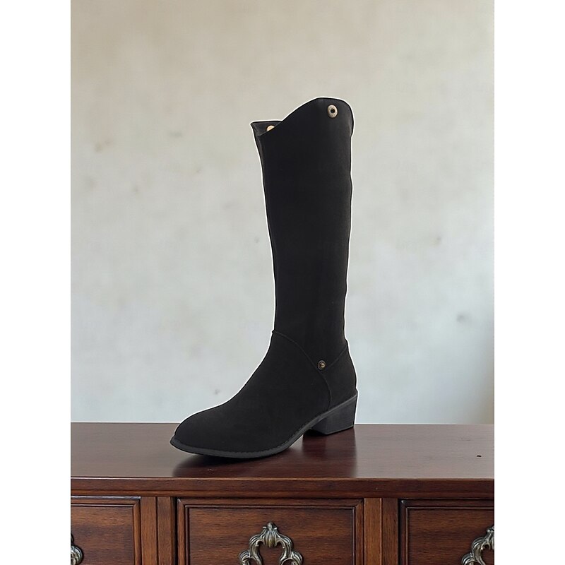Highlights - Luxurious faux suede material for upper - Soft and comfortable textile lining - Stylish block heel for added stability and support - Classic round toe shape for a timeless look - Durable rubber outsole for lasting wear - On-trend riding boots style for 2025 - Elevate your wardrobe with these chic and versatile boots
