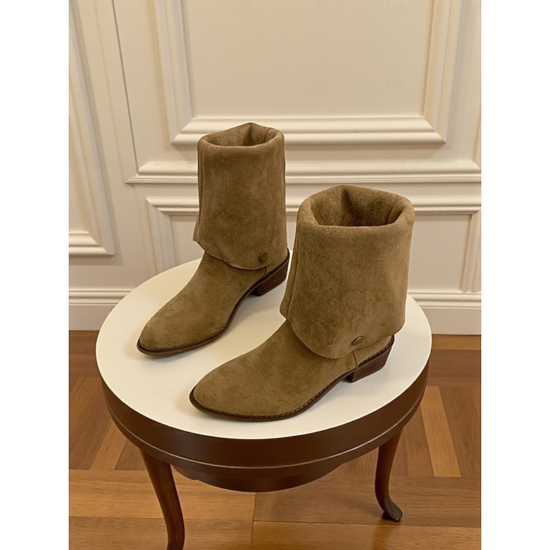 More information about Women's Brown Suede Foldable Knee High Riding Boots with Adjustable Shaft Height - Versatile Urban Casual Fashion Footwear for Everyday Wear