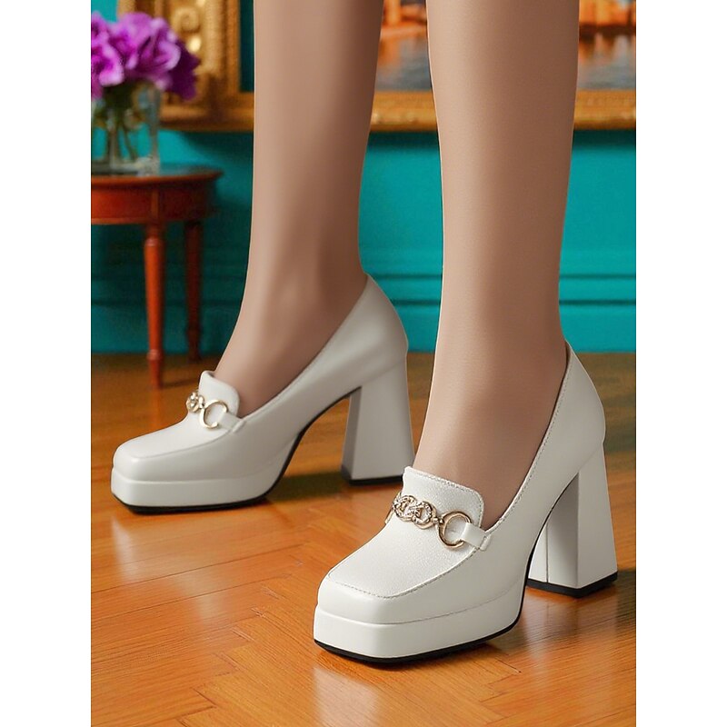 Highlights - Made of high-quality faux leather, these women's shoes are stylish and durable. - The synthetic leather lining ensures comfort and long-lasting wear. - Featuring a trendy block heel, these shoes provide added support and stability. - Designed with a square toe for a modern and sophisticated look. - The rubber outsole offers traction and durability for daily wear. - Perfect for everyday use, these shoes are versatile for any occasion.