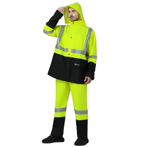 • [HI VIS WATERPROOF RAIN SUIT] Heavy Duty Safety Rain Jacket & Bib Pants keep you dry and safe in wet and dark conditions