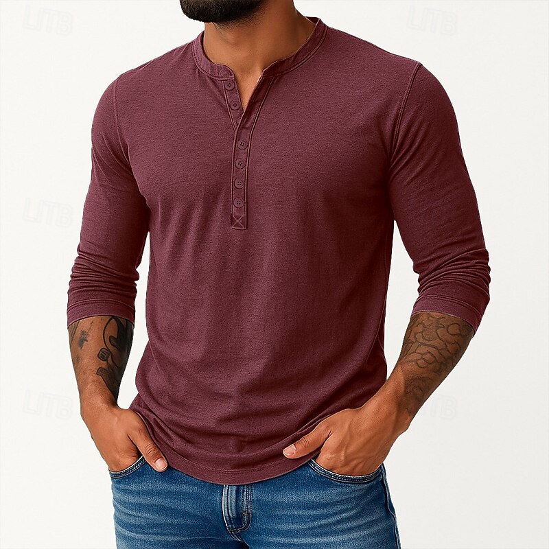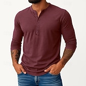 More information about Men's Henley Shirt Tee Top Long Sleeve Shirt Long Sleeve Plain Vintage Basic Casual Vintage Style Washed Henley Vacation Street Casual Spring Fall All Seasons Black Burgundy Navy Blue Henley T-Shirt