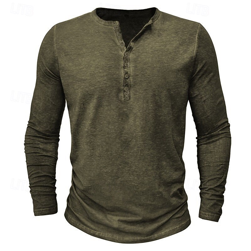 Men's Henley Shirt Tee Top Long Sleeve Shirt Long Sleeve Plain Vintage Basic Casual Vintage Style Washed Henley Vacation Street Casual Spring Fall All Seasons Black Burgundy Navy Blue Henley T-Shirt 9
