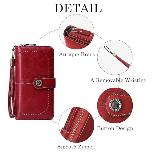 • Premium Materials: This ladies wallet is a fashionable wallet, made of textured high quality leather, softer, more durable and less prone to cracking. Our black womens wallet has a clear surface texture, fine stitching and smooth zipper, which is beautiful and practical. The wristlet wallets for women is designed with a removable wrist strap for your convenience.